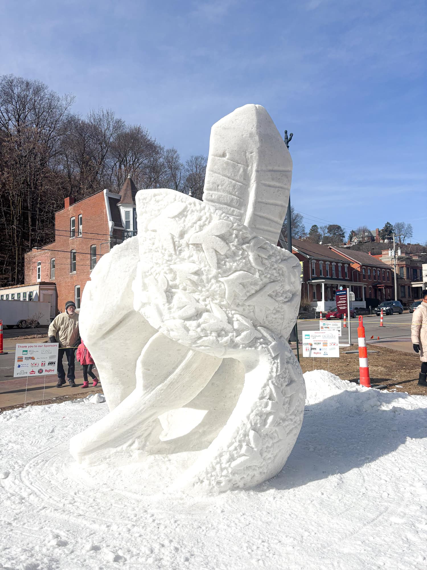 Every year, Dubuque celebrates the Winter Arts Snow Sculpting Festival in its downtown Washington Park. This free, family-friendly event is produced by the Dubuque Museum of Art in partnership with the City's Office of Arts & Cultural Affairs. Typically the 2nd full weekend in February, teams of professional, amateur, and collegiate artists transform 288 cubic feet of snow into masterful works of art.
